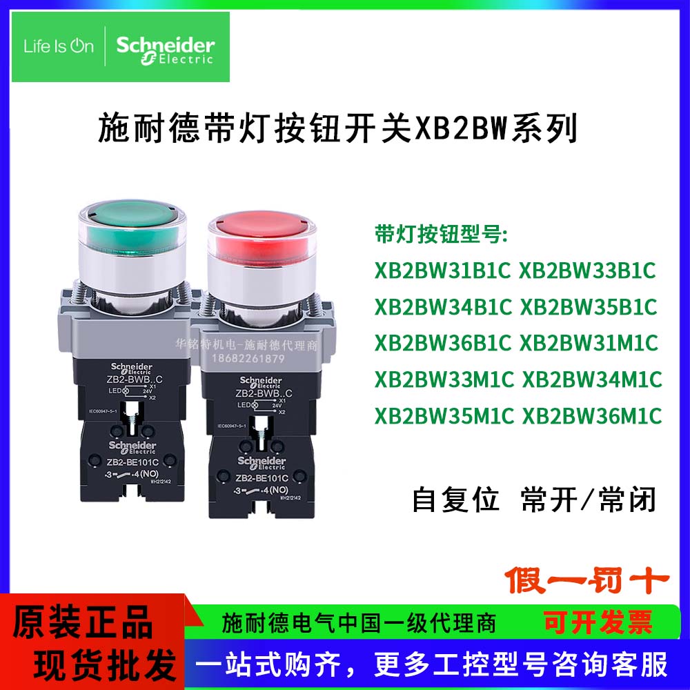 施耐德帶燈按鈕開關(guān)XB2BW33B1C平頭自復位按鈕指示燈代理商